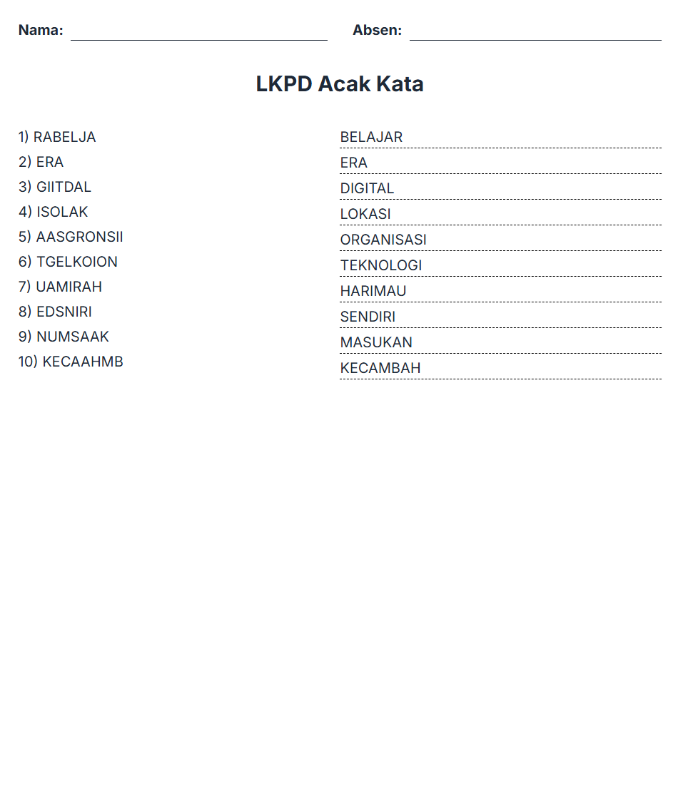 Lembaran yang dirancang untuk memandu siswa dalam proses pembelajaran.